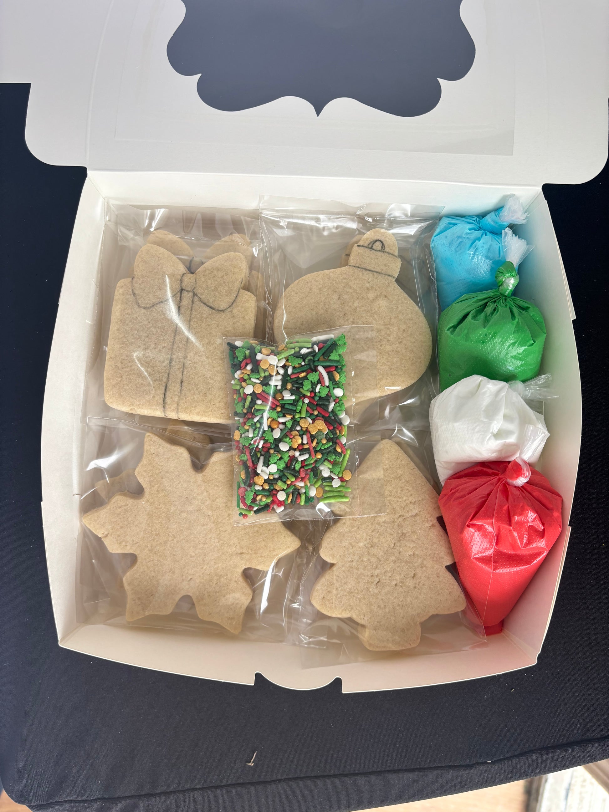 12- 3.5 inch sugar cookies, 4 icing bags and sprinkles